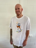AAAF designed T-Shirts in two colours white and purple with screen printed image.100% Cotton. (although image might seem to be blue, the colour is purple). This image is of a skateboarder.