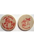THESE SOLID WOODEN 1 1/2" COINS ARE JUST SMALLER THEN A 1/2 DOLLAR. THEY ARE GREAT AS A HANDOUT FOR THE PROFESSIONAL SANTA WHO WANTS TO SEE EVERY CHILD HE SEES GIVE HIM THAT GREAT BIG SMILE FOR MAKING THE "NICE LIST". MAYBE FOR THE SHY CHILD THAT DOESN'T WANT TO SIT ON HIS LAP, BUT IS ENTICED BY THE "SANTA COIN". SOLD IN BAGS OF 100. IF YOU WANT MORE THEN 1 BAG YOU CAN CHANGE THE QUANTITY AT CHECK OUT.