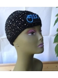 Le Studio Black Sparkle Wool Woman Winter Headband White & Blue Front Logo Free Shipping World Wide Great Quality Thank You