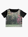 Sheer and slightly silky with an edge-to-edge printed front panel, great for layering