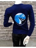 Le Studio Navy Blue Long Sleeves Girlie Round-Neck Silver & Blue Front Logo Morin-Heights Piano window BackGreat Quality,Free Shipping World Widd SaveSave