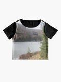 Sheer and slightly silky with an edge-to-edge printed front panel, great for layering
