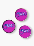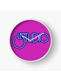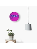 Le Studio Clock Hot Pink White & Blue logo Natural Bamboo wood