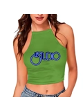 Custom 3D Women's Halter Top With Backless White & Blue logo.Free shipping worldwide